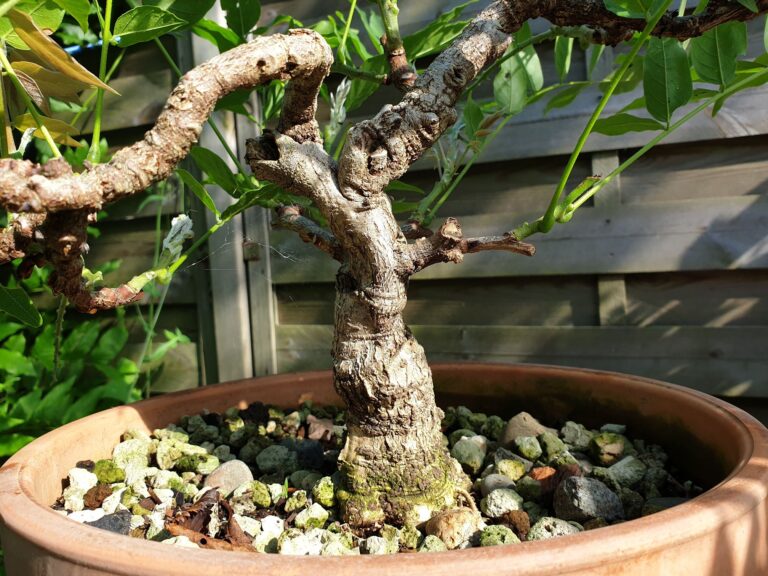 Wisteria floribunda. Plante vigoureuse, qui possède une très belle floraison odorante. La taille de cette dernière ne pouvant pas être réduite, elle implique un bonsaï de taille conséquente. La taille doit être…