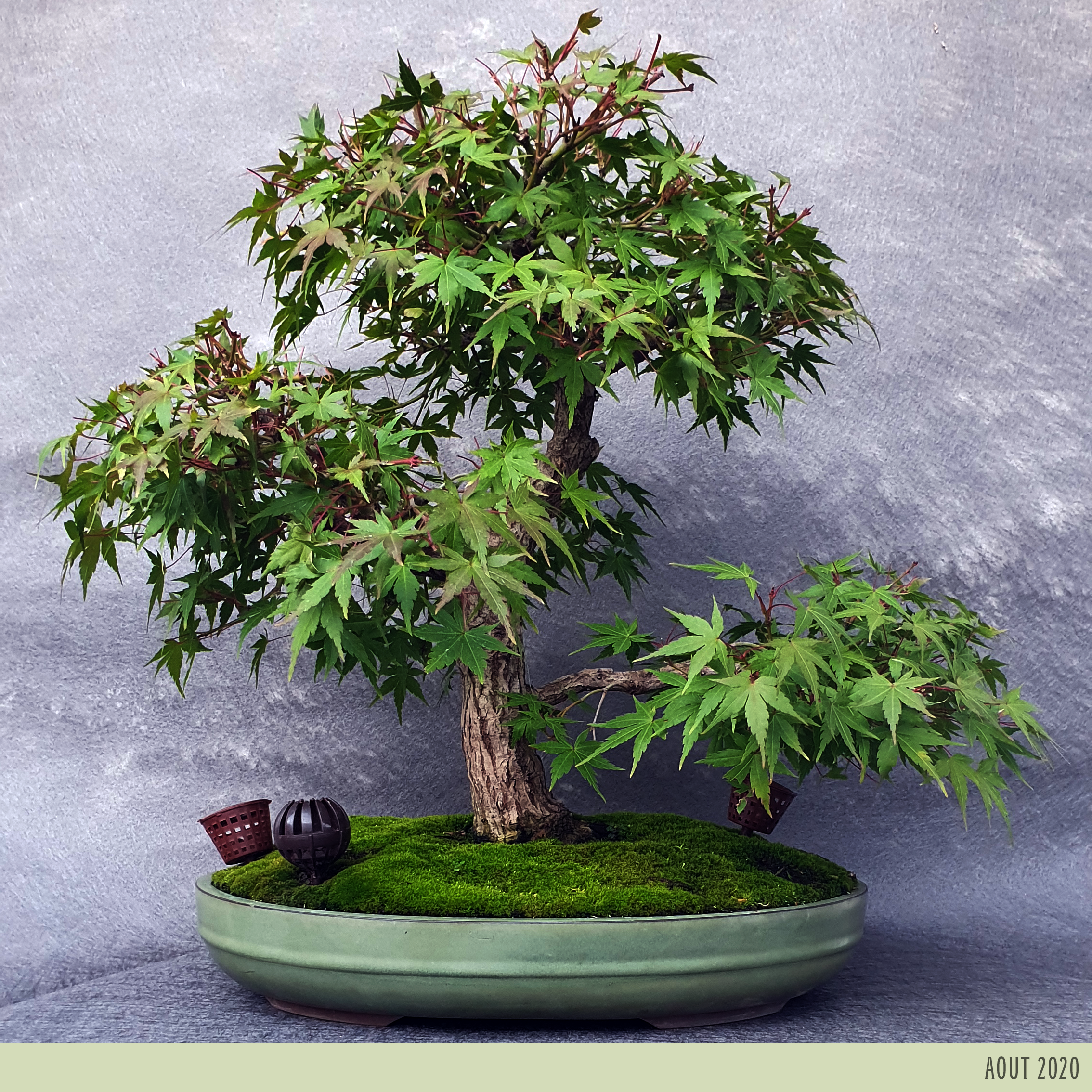 - A l’automne : dès que les grosses chaleurs sont passées, remettez votre érable en plein soleil afin de développer de belles couleurs d’automne. Beaucoup d’amateurs se plaignent de ne pas obtenir des feuilles rouges, trop souvent l’arbre est sur-protégé du soleil. Or c’est la combinaisons du froid et du soleil qui conditionne l’apparition de belles couleurs.