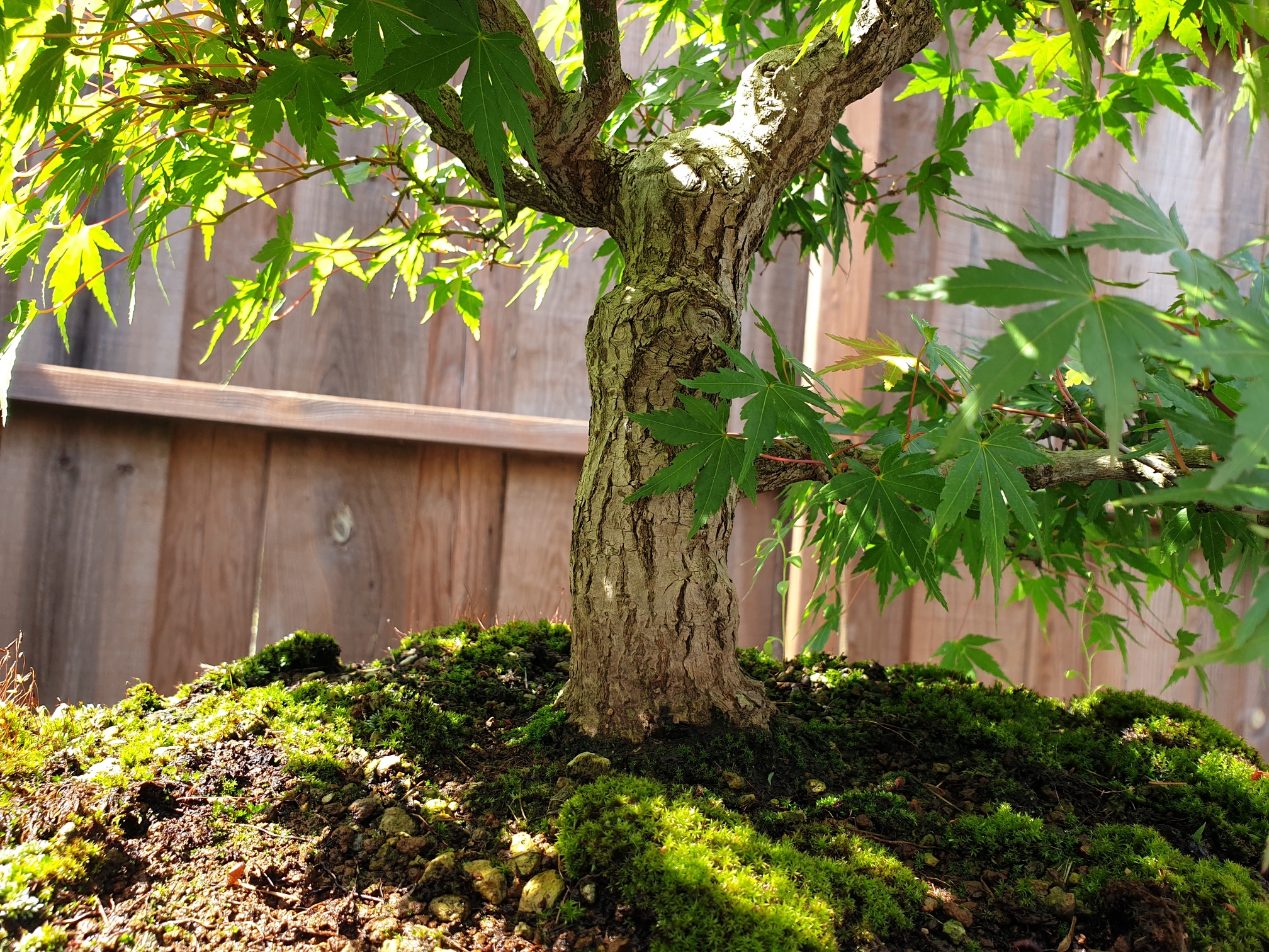Les érables en bonsaï aiment les sols frais avec une bonne part de matière organique (nous utilisons de l’écorce de pin compostée). Évitez les sols trop drainants composés uniquement de pumice ou de pouzzolane, car ils ne retiennent pas suffisamment l’humidité. Il faut un sol frais mais également drainant, les érables n’aiment pas trop avoir les racines qui baignent dans l’eau. Le terreau pur est donc également à proscrire.