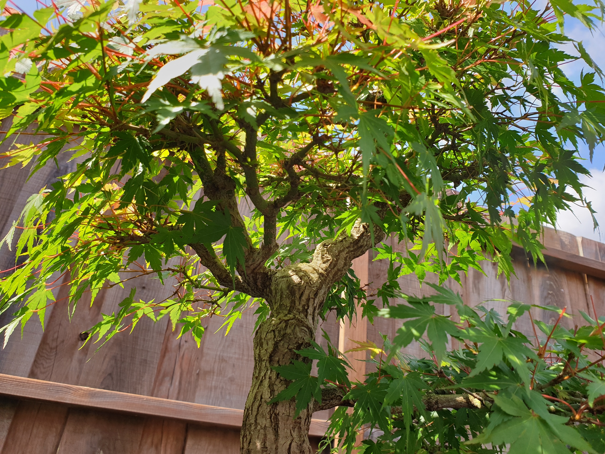 Lorsque vous taillez votre érable bonsaï, vous devez également considérer les caractéristiques de l’espèce. Un palmatum n’est pas un burger. Les érables Palmatum doivent (sauf peut-être la variété Kiyohime) avoir un feuillage très léger, on doit voir le soleil traverser la structure. Un burger a un feuillage et donc une ramification beaucoup plus dense.