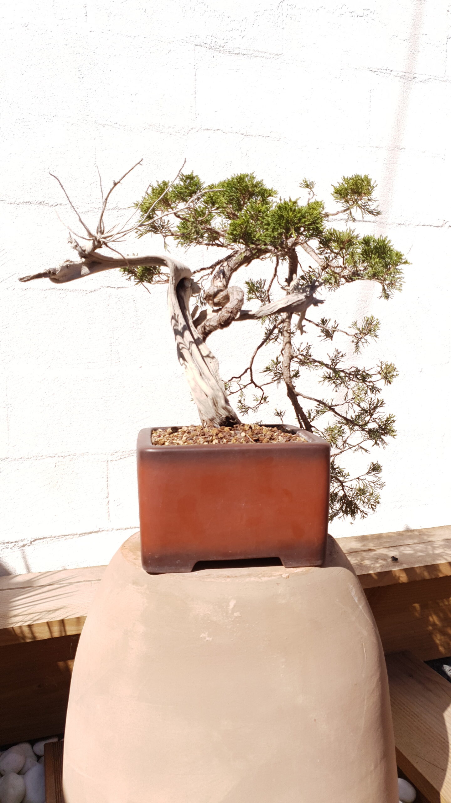 Il faut comprendre une chose essentielle sur le genévrier : sa force vient du feuillage, contrairement aux pins en bonsai dont la force vient des racines (c’est pour cela que le pin supporte mieux le pincement des chandelles).