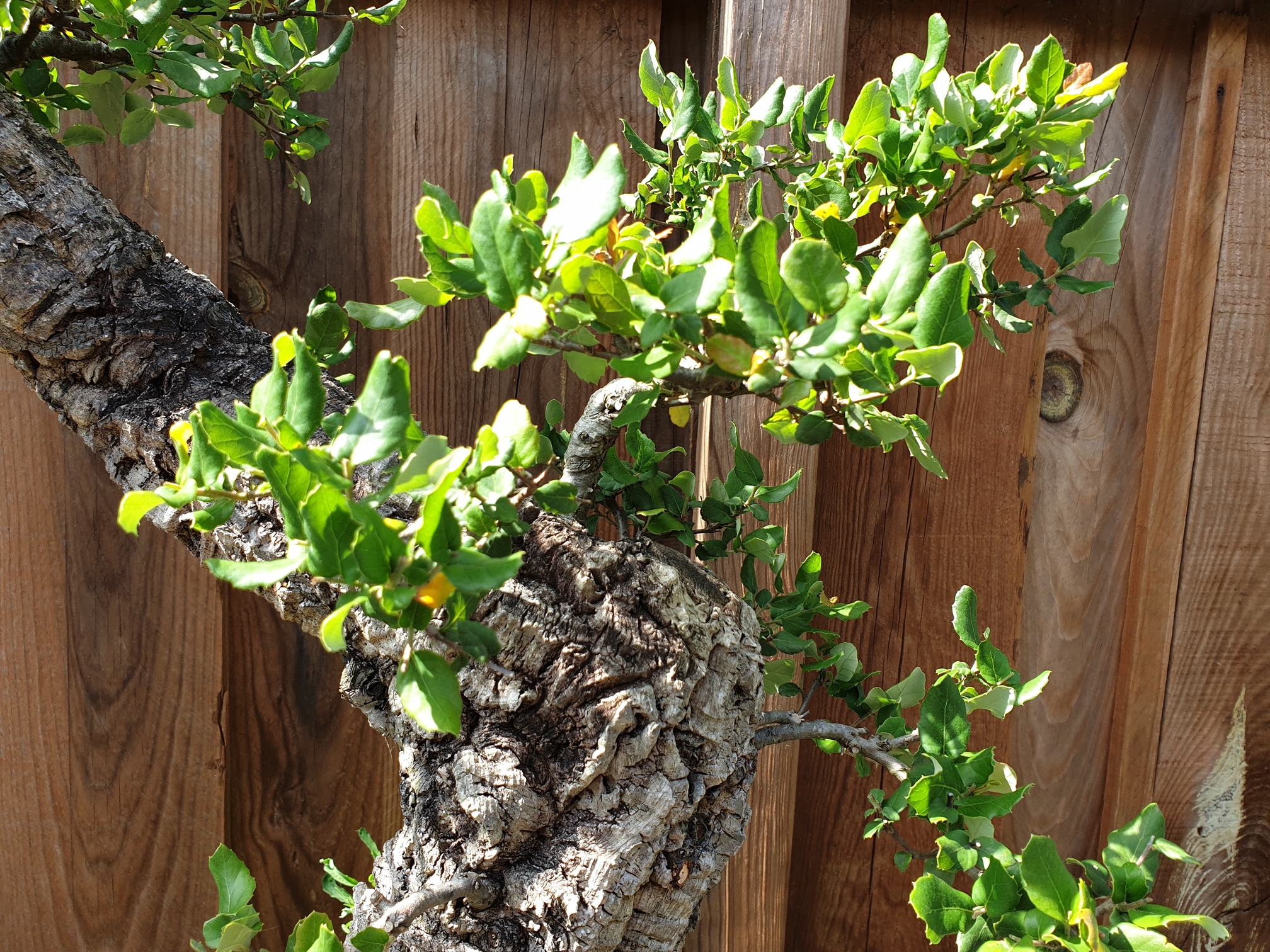Bourgeonne bien en arrière et sur le tronc. Tailler en vert (comme pour l’olivier, le prunus mahaleb…) pour favoriser la ramification. Avec une bonne culture, il est possible de faire 6 ou 7 tailles en une seule saison. Pour faire grossir une branche, laisser « tirer » le rameau jusqu’au diamètre voulu. Ligature : Difficile sur les grosses branches car le bois du chêne liège est très cassant et l’écorce fragile. Préferez la formation de l’arbre par la taille ou le haubanage.